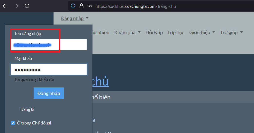 Bước 1 : đăng nhập site với "tài khoản" của bạn