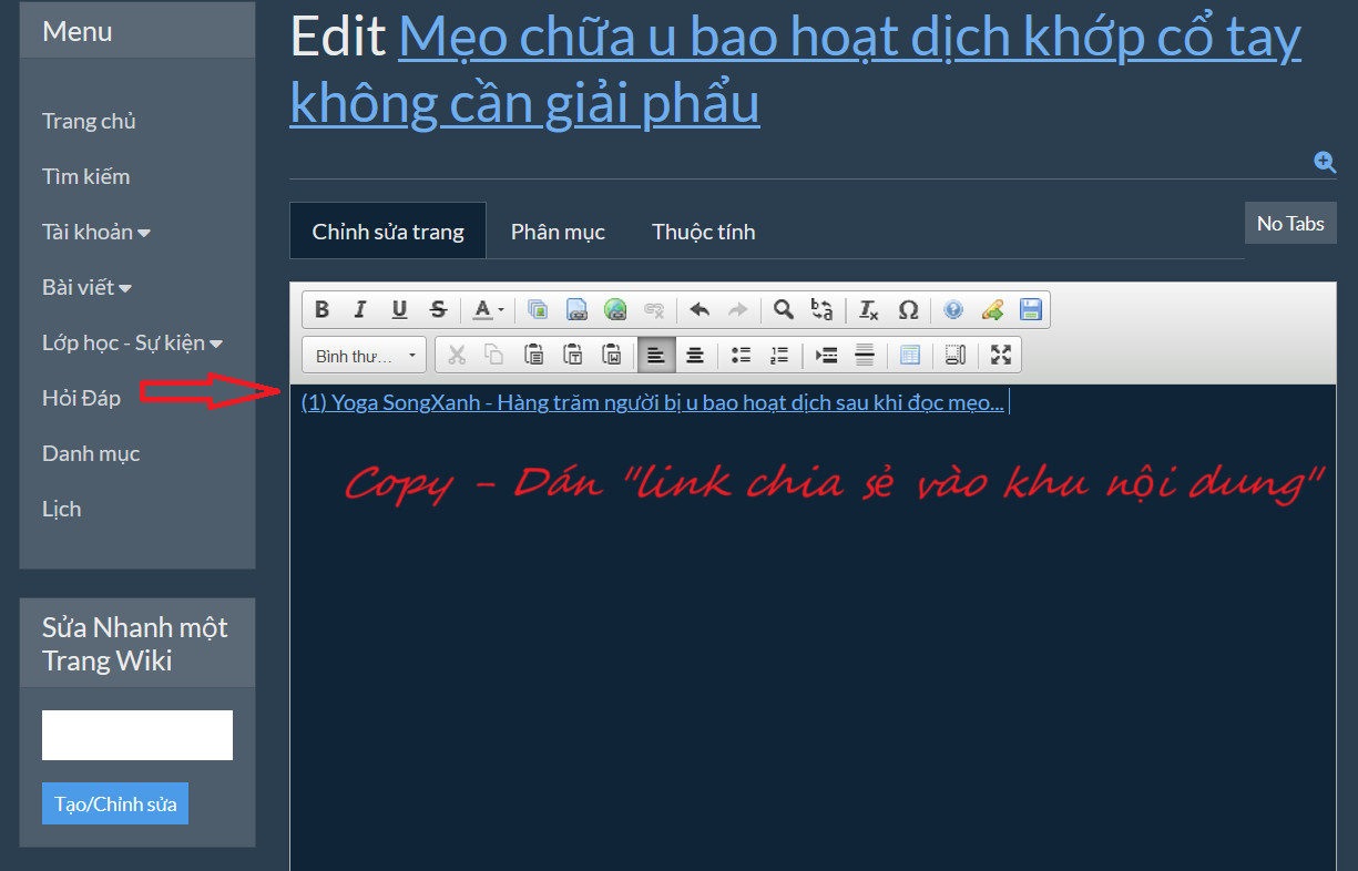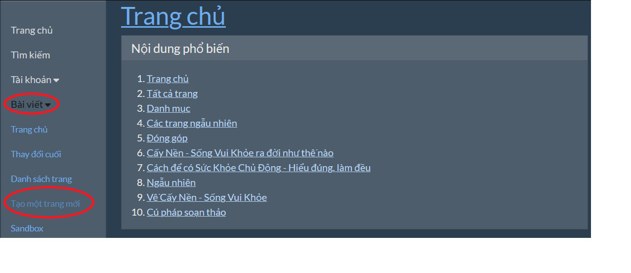 Nếu nội dung chưa có, sẽ được dẫn “tạo trang mới” như các bước ở trên