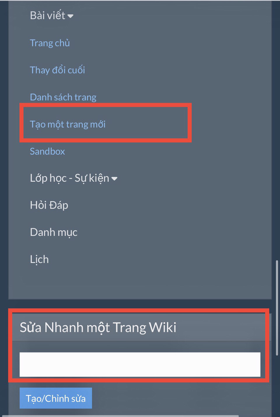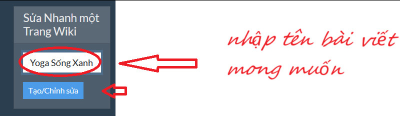 Cách 2 : nhập tên trang muốn tạo vào ô “sửa nhanh một trang wiki”.
