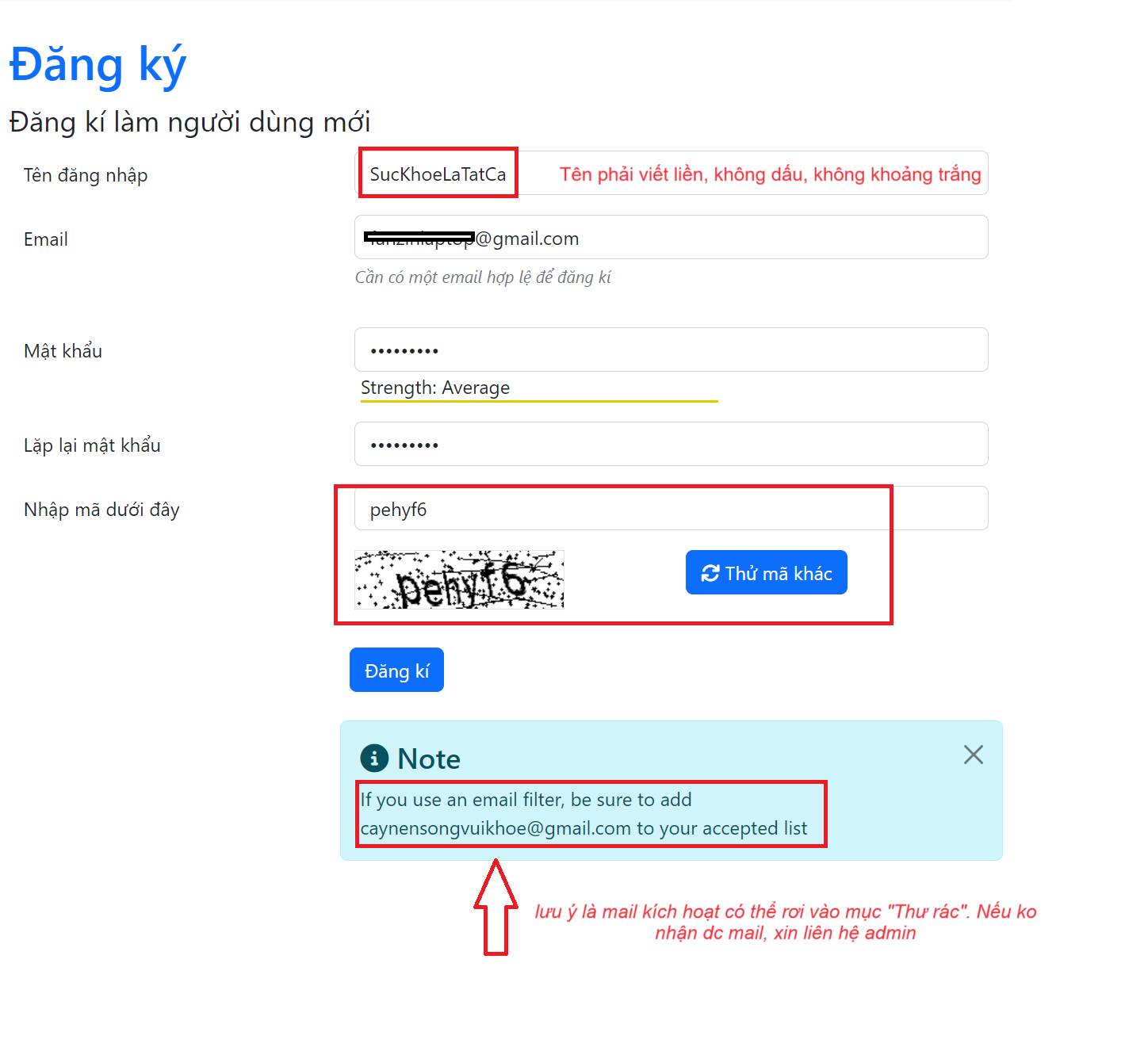 - Nhập mã chống Spam : nếu mã khó đọc, hãy bấm "Thử mã khác"